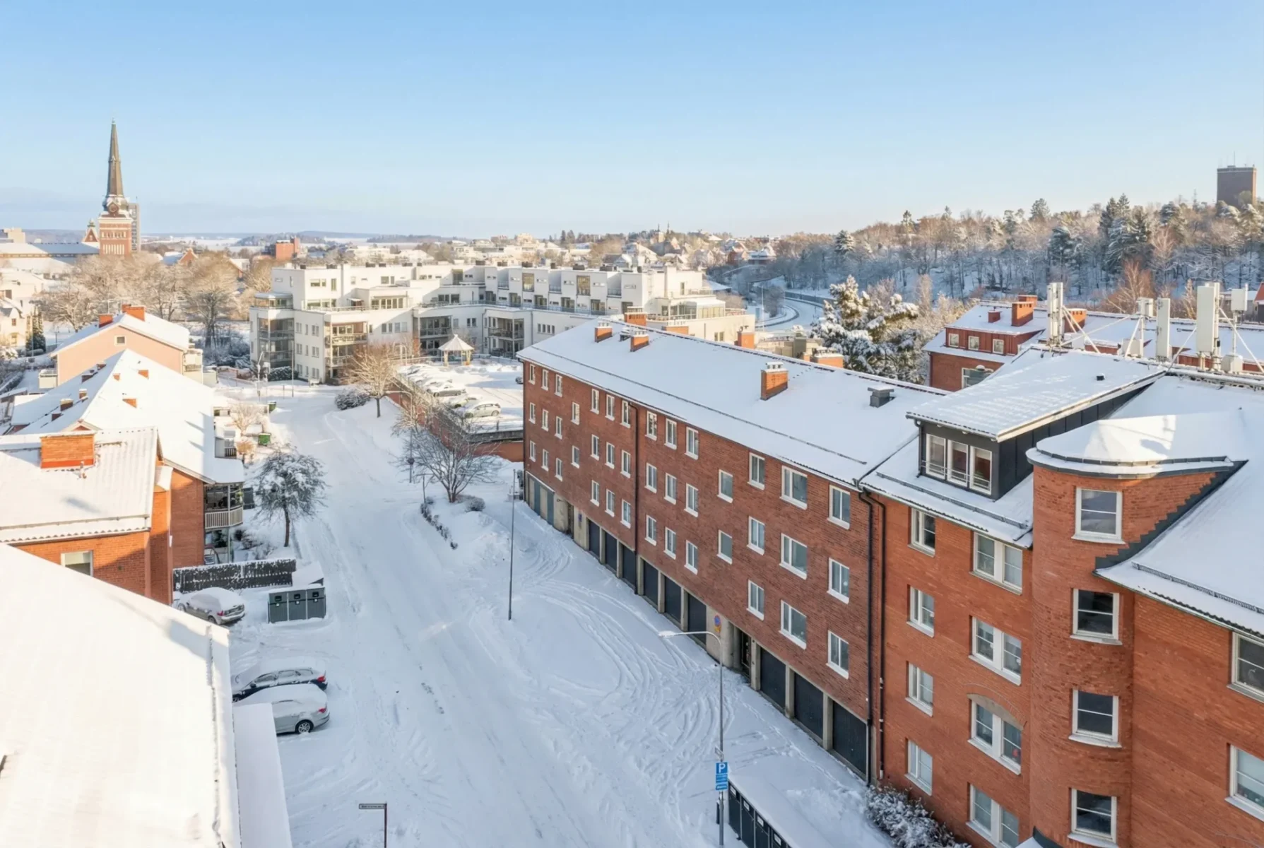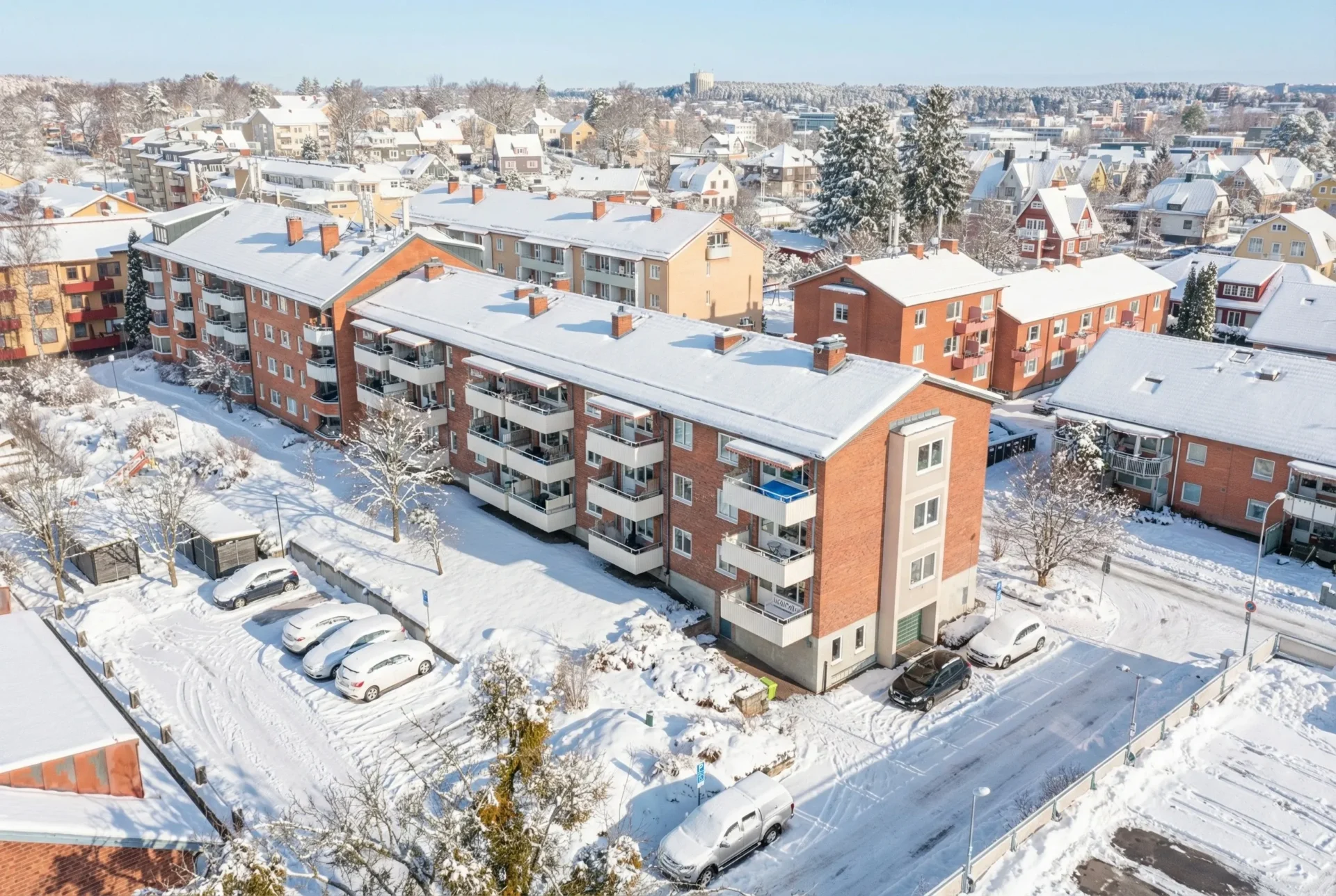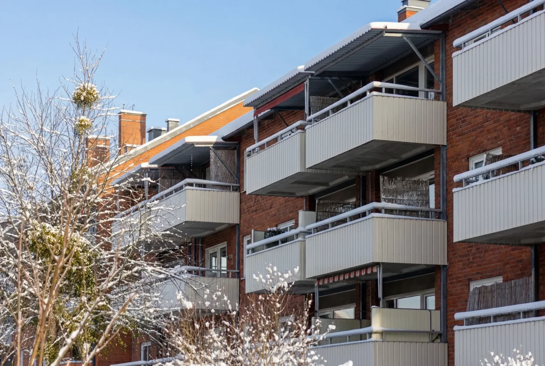 Balkonger som vetter mot Svartån, samt mot gården med vy mot Västerås DomkyrkaParkering